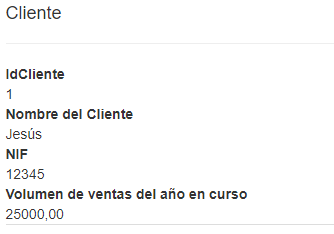 Cliente: Gracias a los métodos DisplayNameFor y DisplayFor, que aceptan un árbol de expresión como parámetro, obtenemos una representación como la siguiente:Como se puede observar se ha utilizado el atributo